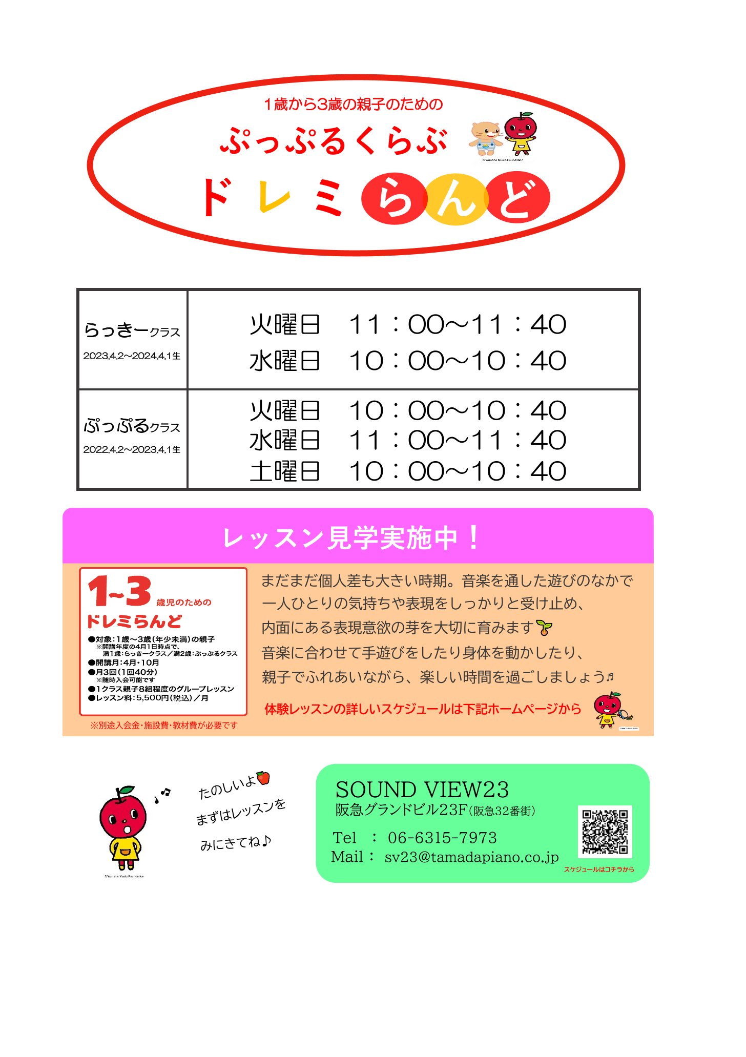 梅田にあるヤマハ音楽教室「SOUNDVIEW23」では、1歳・2歳のクラス、